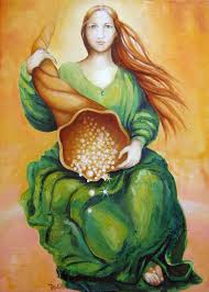 Es la Diosa Romana de la Abundancia, prosperidad y fortuna. Su atributo es una cornucopia ("cuerno de la abundancia" con el que ella distribuye el grano y el dinero.